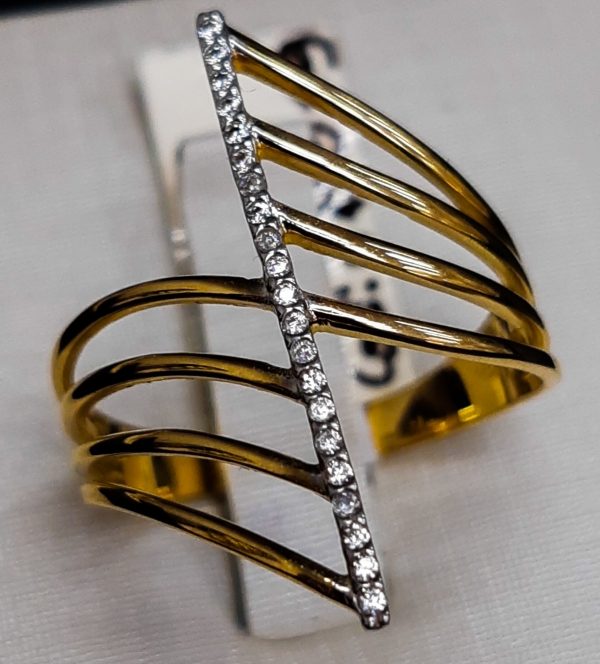 Anel 18K Aro Triplo com vertical de Zircônias, 3,9g