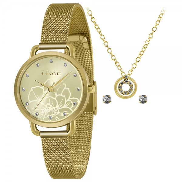 RELÓGIO LINCE COM CONJUNTO FOLHEADO