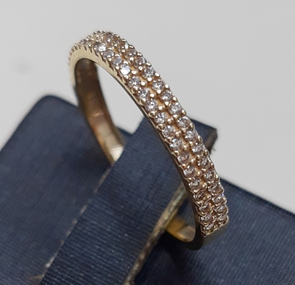 Anel 10K meia aliança cravejada com zircônia 1,3g