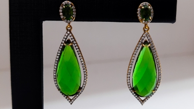 Brinco folheado com pedras verdes
