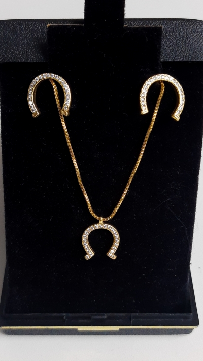 Conjunto folheado, gargantilha e brincos com ferradura.