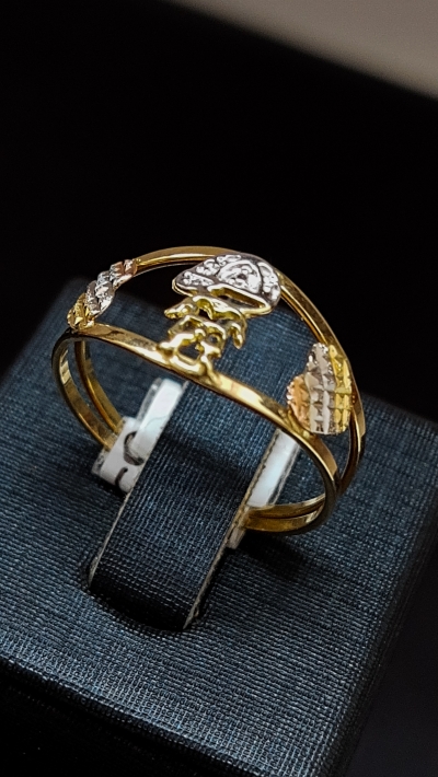 Anel em ouro 10K, aro duplo filho/filha com corações 1,3g