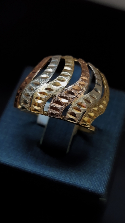 Anel em ouro 10K, três cores fosco.