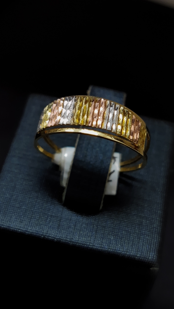 Anel em ouro 10K, três cores, aro duplo