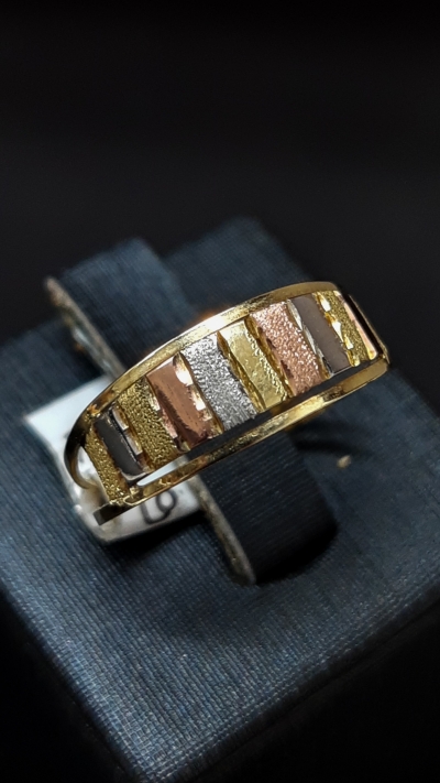 Anel em ouro 10K, aro duplo, três cores, peso 1,1g