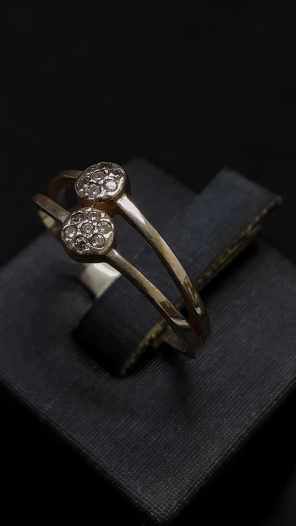 Anel em prata, aro duplo com 2 pavês redondos com zircônia