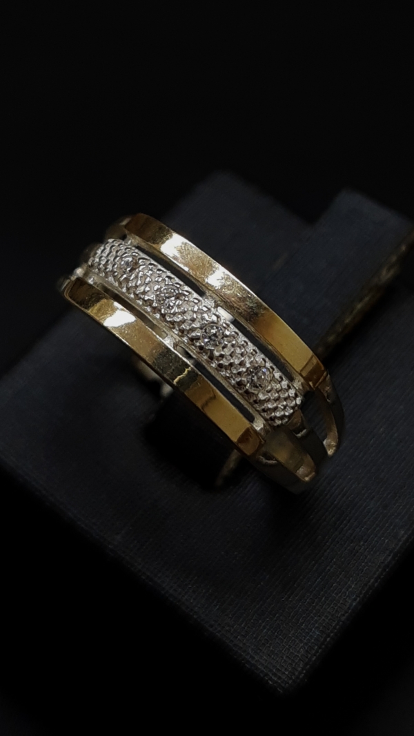 Anel em prata, aro triplo com zircônia e dois filetes em ouro 10K