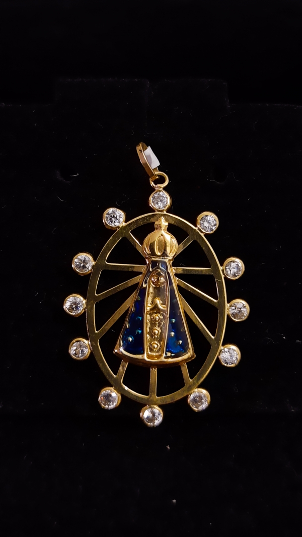 Pingente 18K, Nossa Senhora Aparecida com zircônias, peso 1,6g