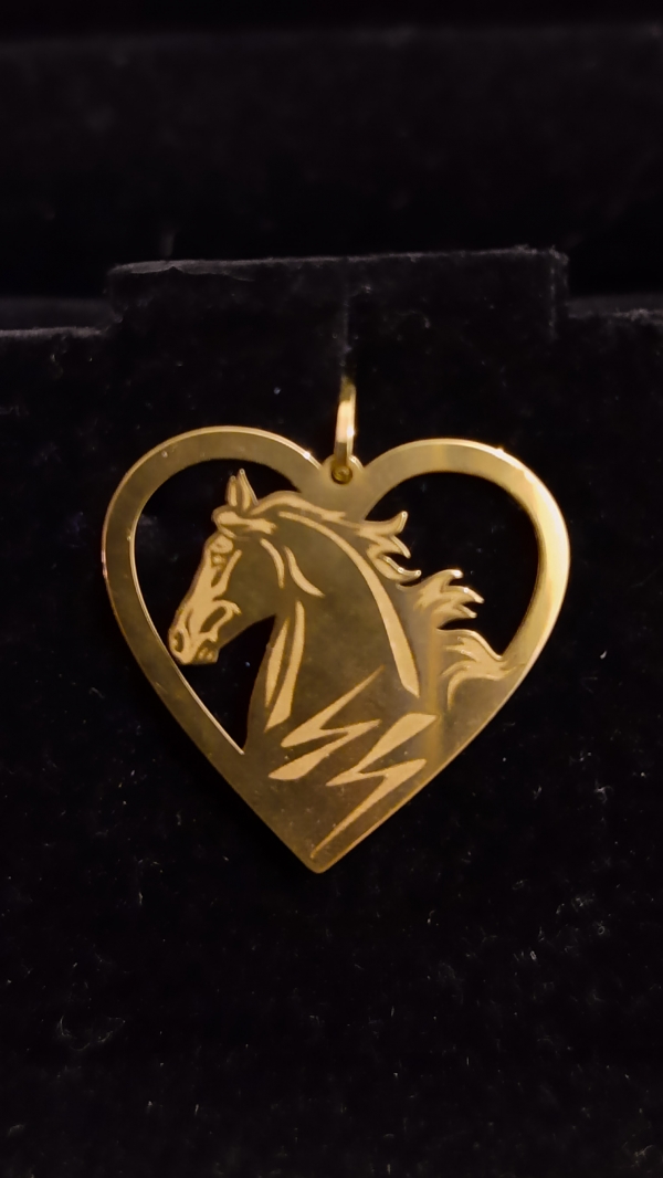 Pingente 18K, coração com cavalo