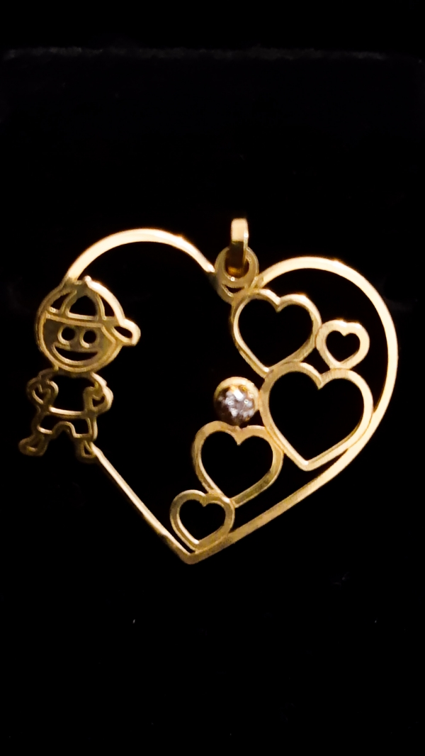 Pingente 18K, menino e coração com zircônia