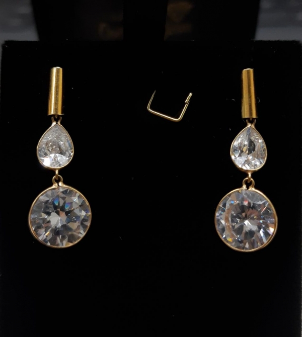 Brinco em ouro 18k com zircônia gota e redonda, 4,1g.