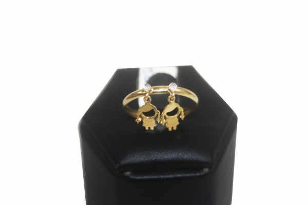 ANEL 18K COM PINGENTE MENINAS e ZIRCÔNIAS