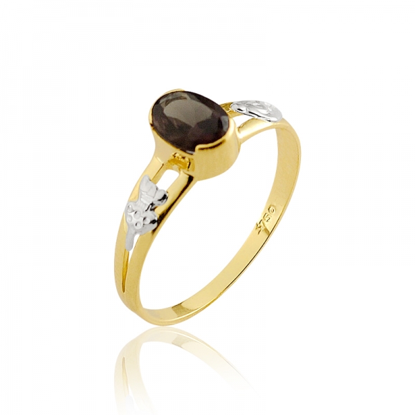 Anel de formatura, com aro duplo, mais 1 pedra no centro e emblemas nas laterais conforme a formatura.
