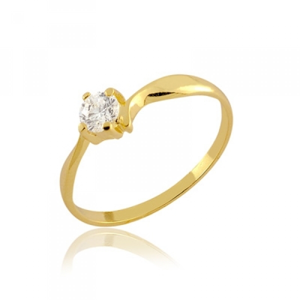 Anel solitário, ouro 10k, número xx, meia cana lisa com 4 garras e uma zircônia 4,0mm branca no centro, peso 1,9gr