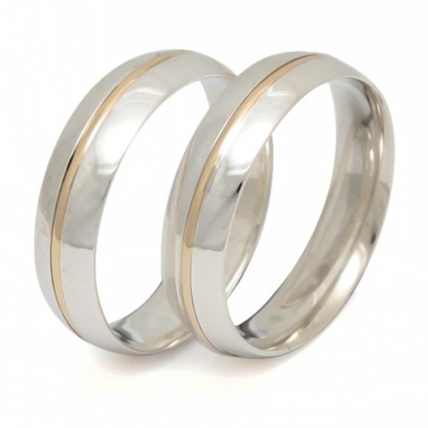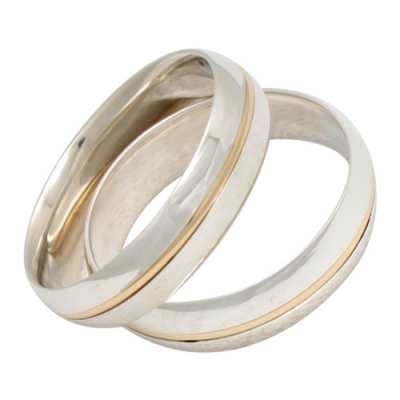 Par de aliança em prata, anatômica, 1 friso com um filete de ouro no centro, com 6,0mm de largura por 1,8mm de espessura.