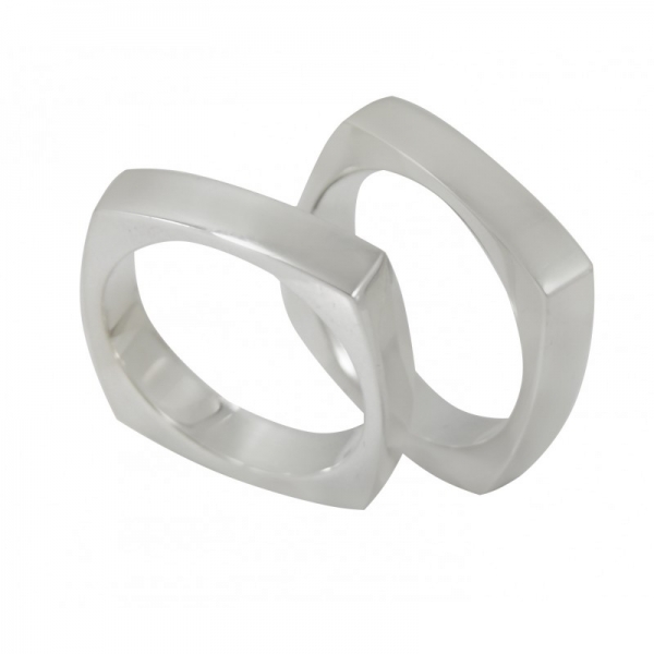 Par de aliança em prata, quadrada, com 3,0mm de largura por 1,1mm de espessura.