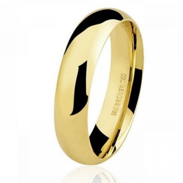Par de aliança em ouro, anatômica, com 5,0mm de largura por 1,5mm de espessura, peso 15,0gr.