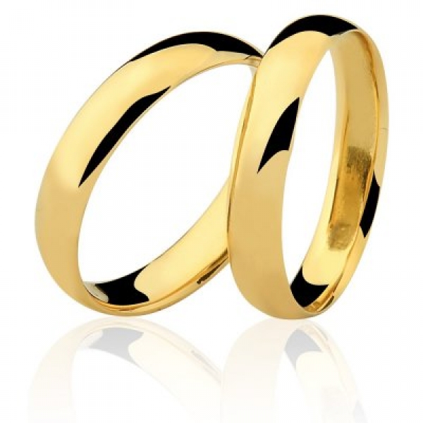Par de aliança em ouro, anatômica, com 4,0mm de largura por 1,3mm de espessura, peso 9,0gr.