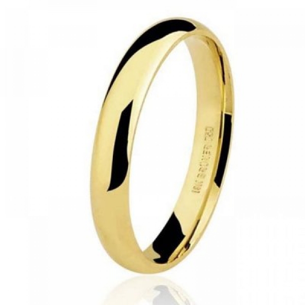 Par de aliança em ouro, meia cana lisa, com 3,0mm de largura por 1,0mm de espessura, peso 5,5gr.