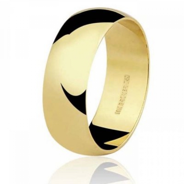 Par de aliança em ouro, meia cana lisa, com 7,0mm de largura por 2,0mm de espessura, peso 23,5gr.