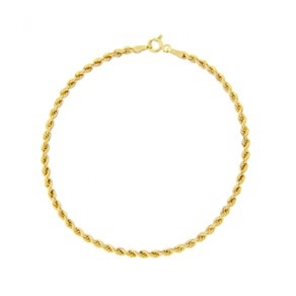 Pulseira em ouro, corda, com 20cm, peso 1,7gr.
