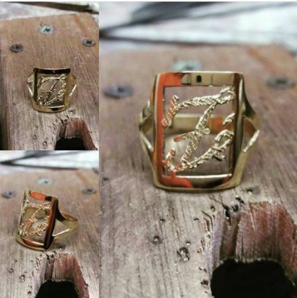 Anel 18k quadrado vazado, com trabalhado diamantado, escrito Fé, mas pode ser personalizado por sua preferencia.
